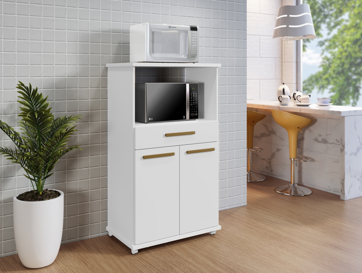 Perfeito para diversos ambientes, O Balcão Conquista é ideal para organizar sua cozinha com praticidade, versatilidade e beleza. Possui espaço para Micro-ondas e Forno Elétrico, 2 portas com dobradiças metálicas, ampla gaveta, prateleira interna e rodízios para facilitar a locomoção, tudo isso para garantir mais facilidade no seu dia a dia. Desenvolvido para combinar com qualquer decoração, ele torna o ambiente mais bonito e funcional. Especificalções do Produto Montado: Garantia: 3 meses Não oferecemos serviço de montagem, mas todos os produtos possuem manual de montagem com o passo a passo. Recomendamos contratar um profissional de montagem. |
