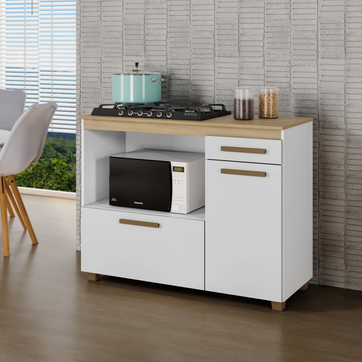 Que tal agregar mais beleza e estilo a sua cozinha? Este lindo Balcão para Cooktop 4 bocas Cronos foi projetado para o melhor uso do seu fogão, o balcão é Ideal para cooktop de 4 bocas de diversos modelos, o tampo possui um recorte para receber fogões com nicho de 53,5 cm de largura por 35 cm de profundidade. O tampo em MDF 15mm, cinamomo garantindo durabilidade para o móvel. Ainda possui 2 Portas sendo uma basculante e uma ampla gaveta. Projetado para acomodar com praticidade e elegância um forno elétrico no compartimento central. IDEAL PARA COOKTOP DE 4 BOCAS Garantia: 3 meses |