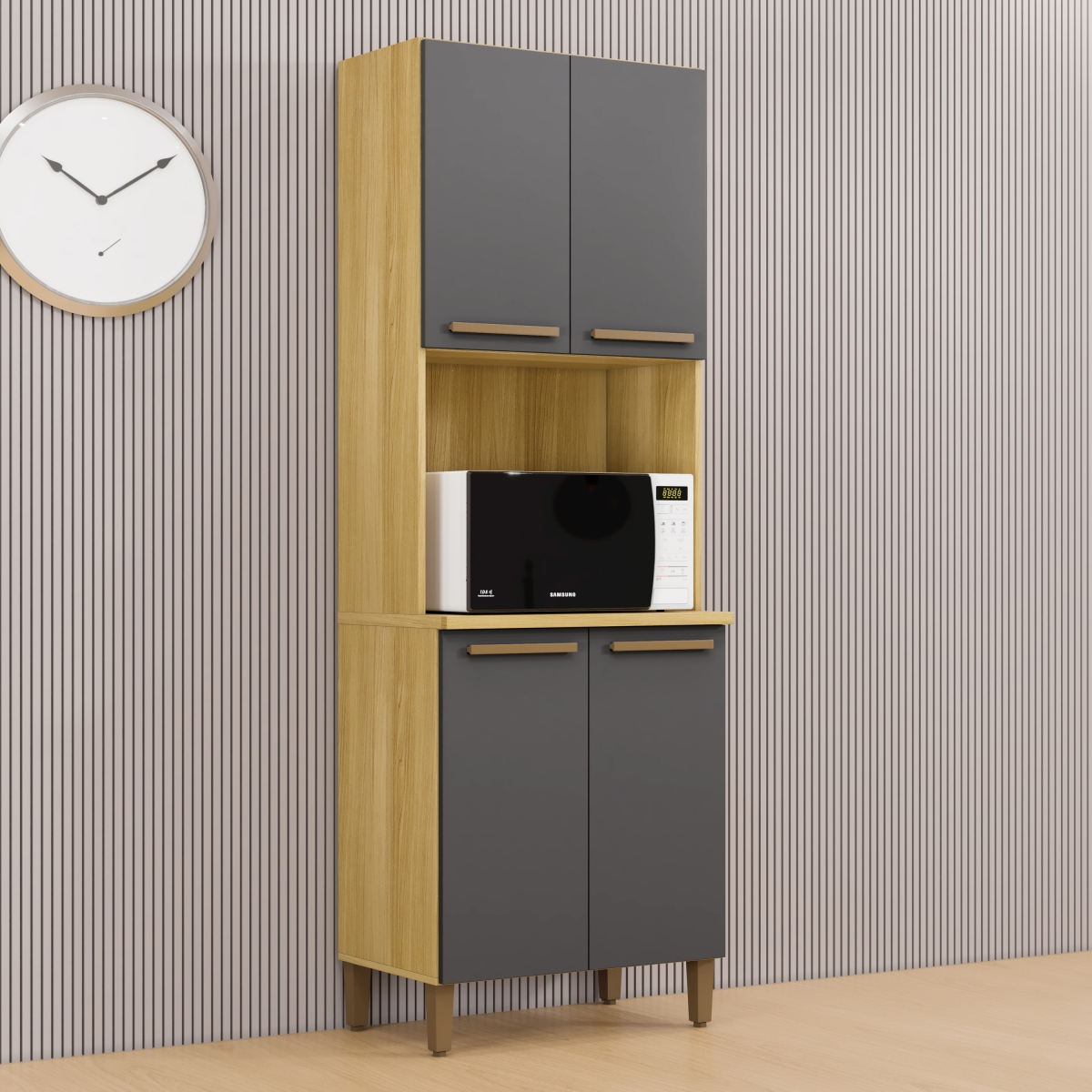 Funcionalidade e elegância para sua cozinha Transforme a rotina da sua cozinha com o Paneleiro Romano 4 Portas da Arte Móveis. Um móvel versátil, com design inteligente, que une organização, sofisticação e praticidade em um só produto. Ideal para armazenar mantimentos, utensílios e eletros, ele oferece excelente espaço interno sem abrir mão da beleza. Seu acabamento moderno em tons neutros se adapta facilmente a diversos estilos de decoração, tornando o ambiente mais leve, harmonioso e funcional Destaques que fazem a diferença: Design elegante e atemporal, perfeito para cozinhas compactas ou espaços amplos Estrutura robusta em MDP/MDF, que garante durabilidade e resistência 4 portas amplas, ideais para manter tudo bem organizado Acabamento de qualidade que valoriza o ambiente