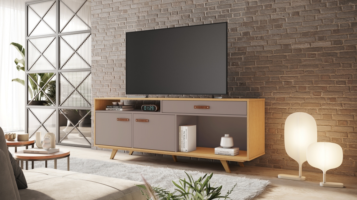Rack para TV até 65 Polegadas 2 Portas 1 Gaveta Impar JCM Móveis. Medidas e Peso Altura: 66,5 cm |